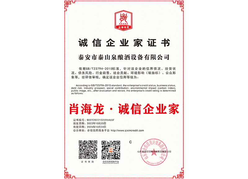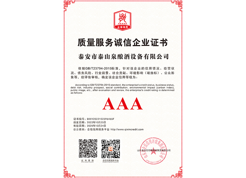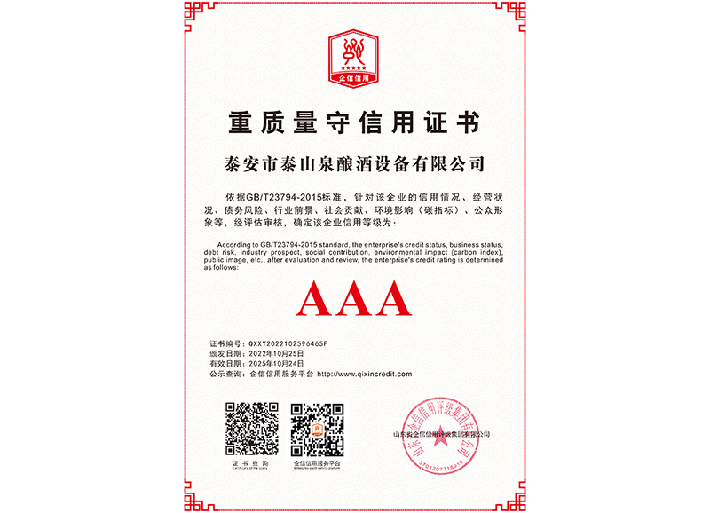 泰安市泰山泉釀酒設(shè)備有限公司,是一家專業(yè)從事釀酒設(shè)備機(jī)械化研發(fā)并集技術(shù)咨詢,工程設(shè)計(jì),制造安裝,人員培訓(xùn)及售后服務(wù)為一體的綜合性企業(yè),本公司主要產(chǎn)品為:大曲清香、小曲清香、大曲醬香、大曲濃香等香型白酒機(jī)械化設(shè)備。 本公司與中國(guó)科學(xué)院自動(dòng)化研究所簽訂技術(shù)服務(wù)合同,引進(jìn)先進(jìn)技術(shù),研究生產(chǎn)全自動(dòng)化機(jī)械釀酒設(shè)備,由中國(guó)科學(xué)自動(dòng)化研究所的技術(shù)支持,打造最先進(jìn)的生產(chǎn)釀酒設(shè)備,公司有信心打造全國(guó)最先進(jìn)白酒...